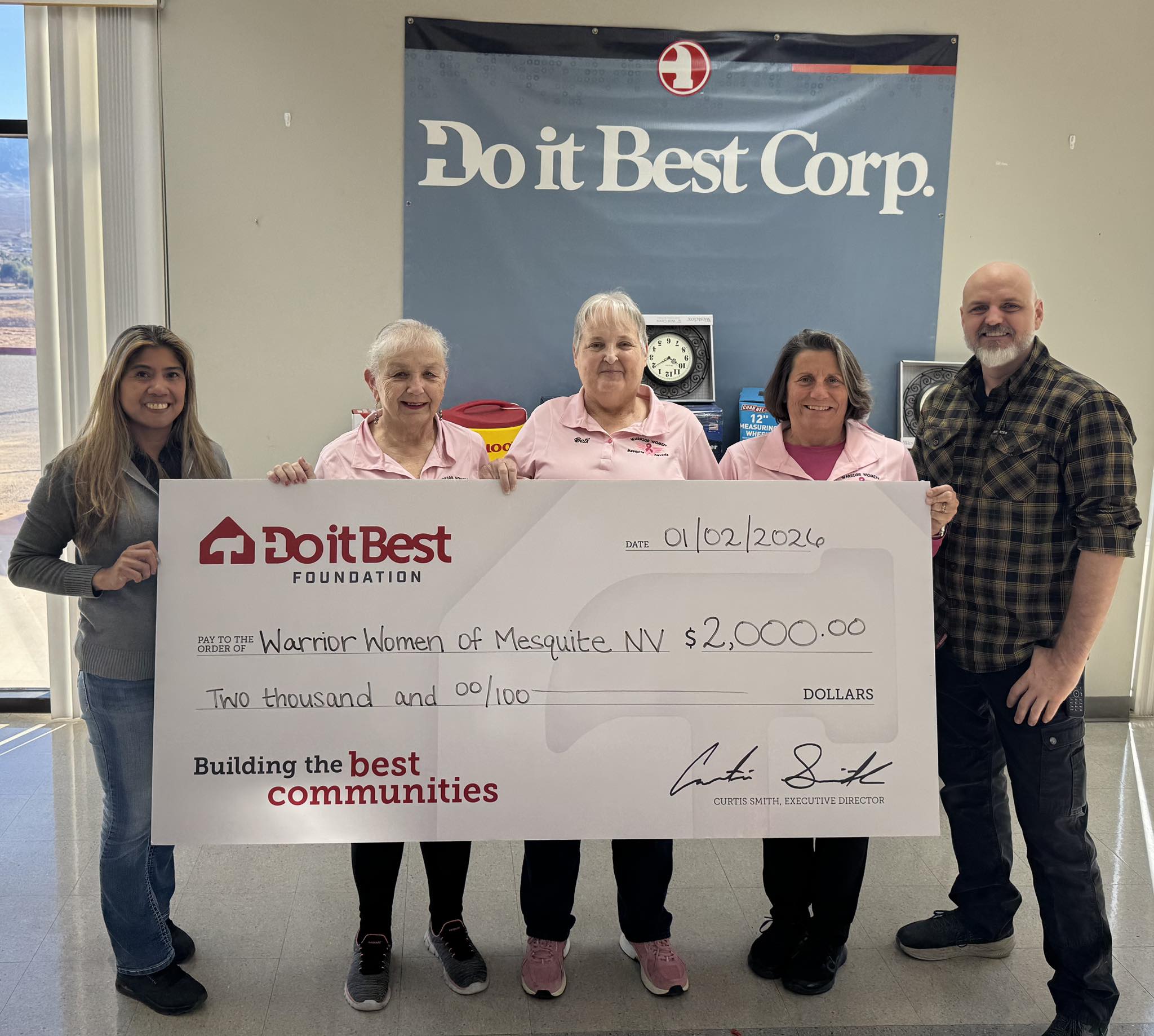 The Warrior Women of Mesquite Nevada would like to give a huge shout out to the Do it Best Foundation and Do It Best Corporation Mesquite Nevada for awarding us with a $2,000 grant. Thank you to Winnie and Brandon for the photo opportunity.