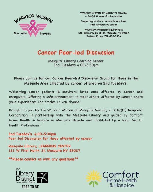 Brought to you in partnership with the Mesquite Library and guided by Comfort Home Health & Hospice in Mesquite and facilitated by a local Mental Health Professional.